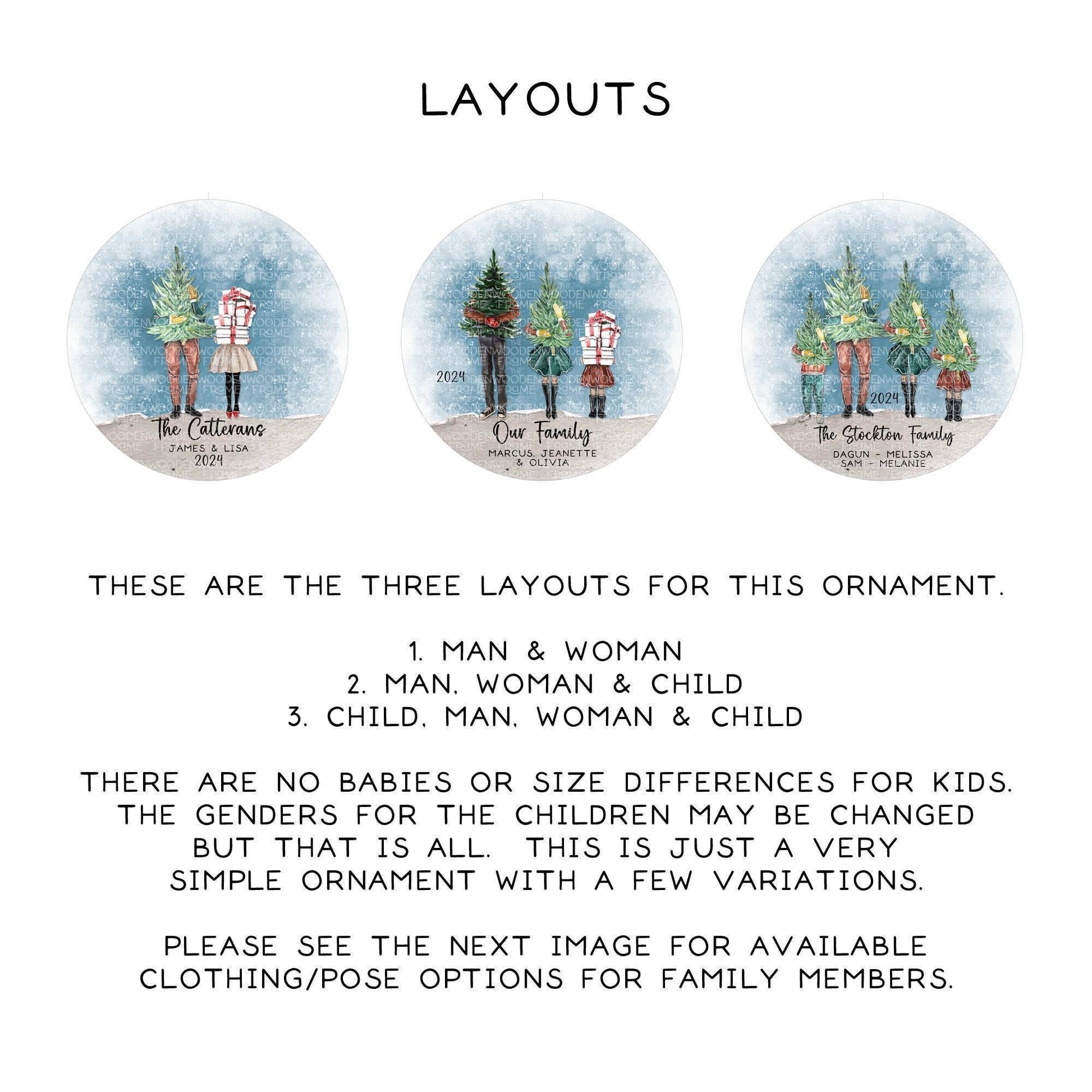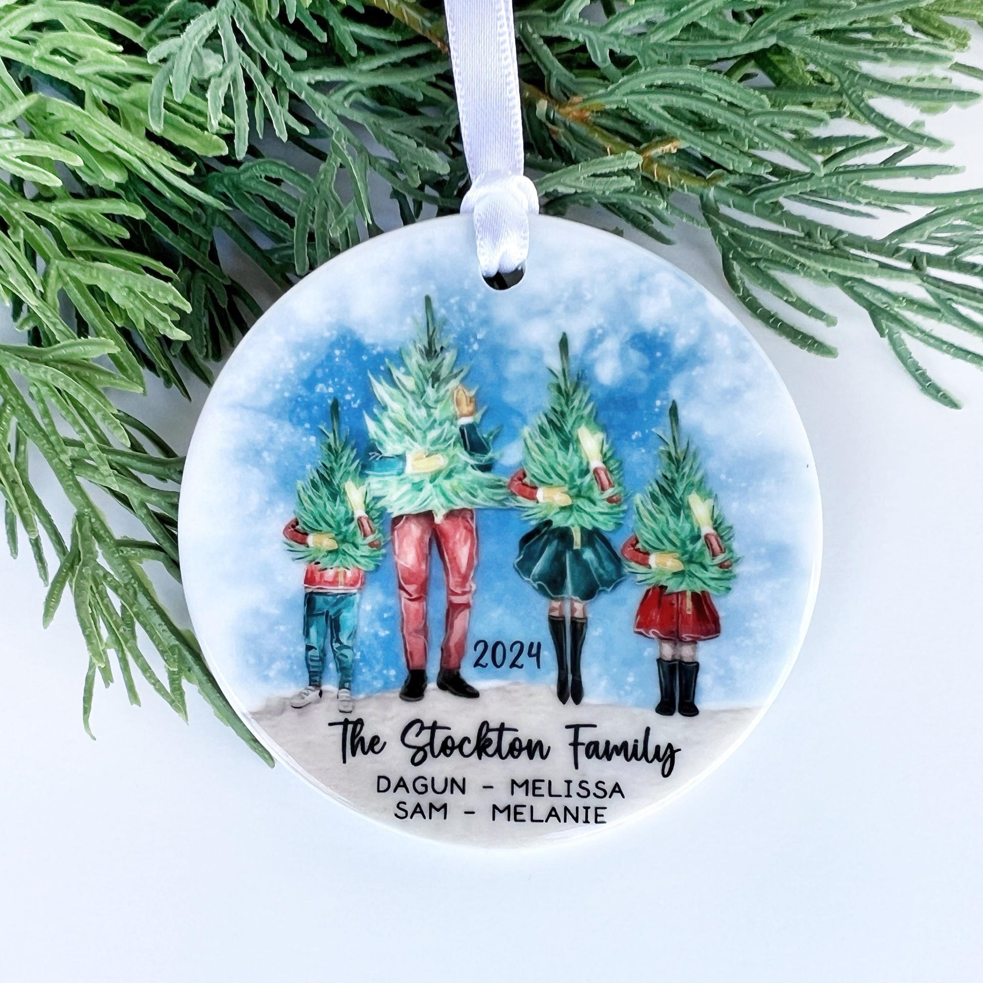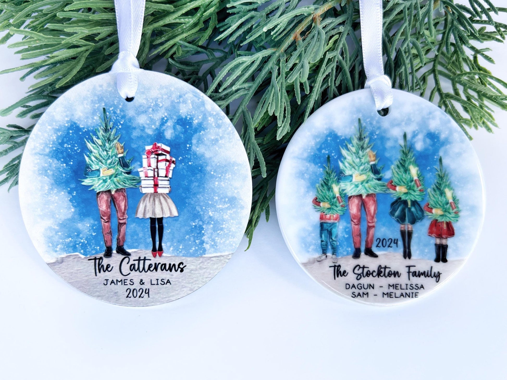 Custom Family of 4 Ornament – Holiday Keepsake with Matching Outfits & Year