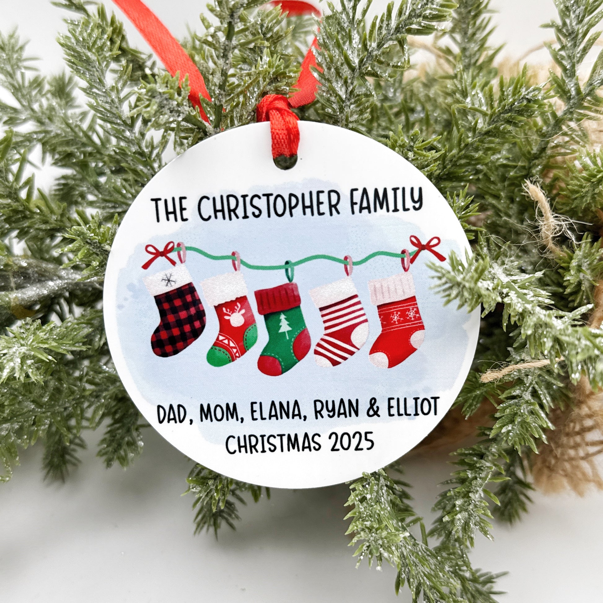 Personalized Family Stocking Ornament – Custom Names for 2 to 6 Members with Year