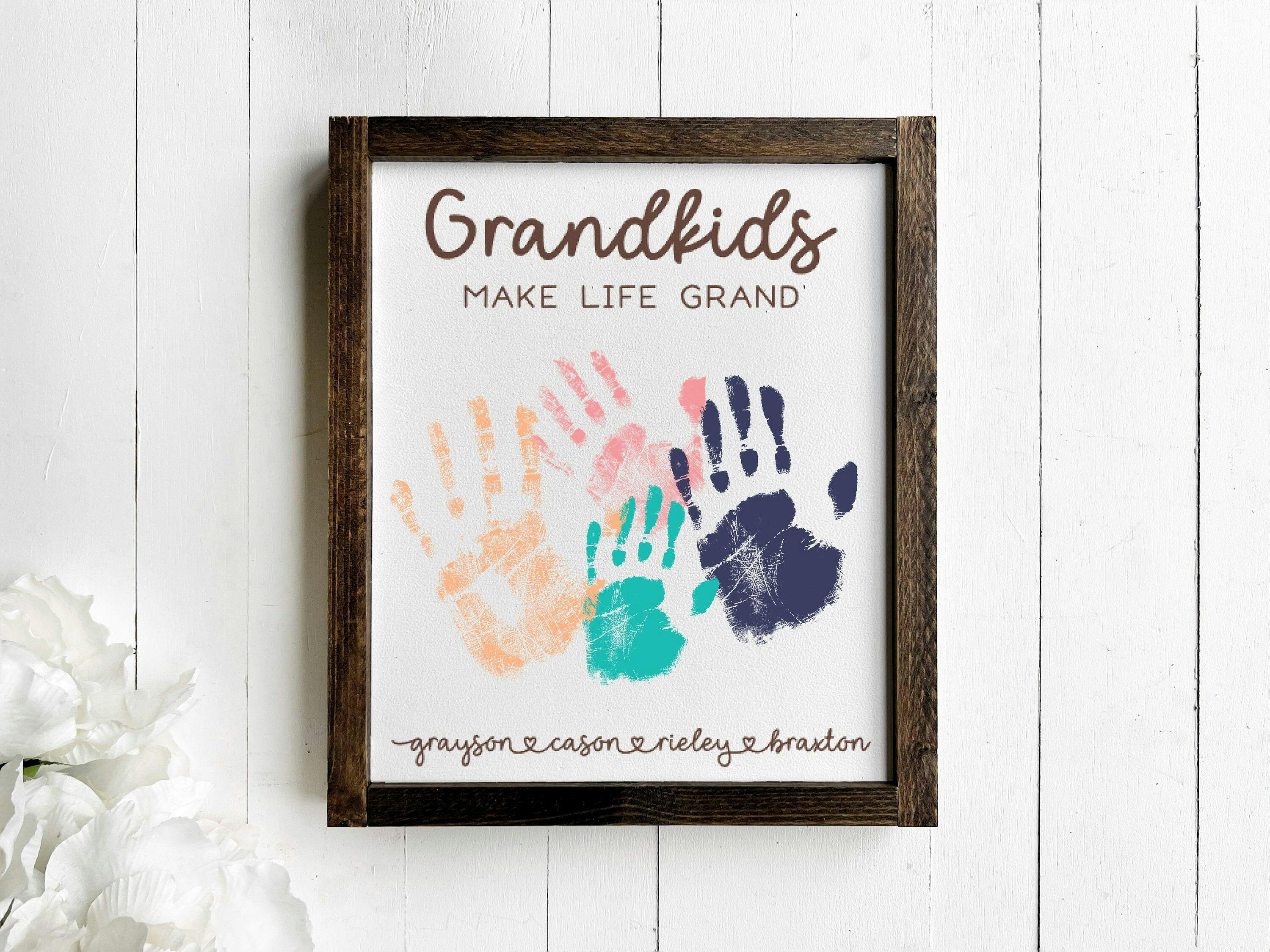 Grandkids Handprint Sign, DIY Gift for Grandma, Grandkids Make Life Grand Hand print Art