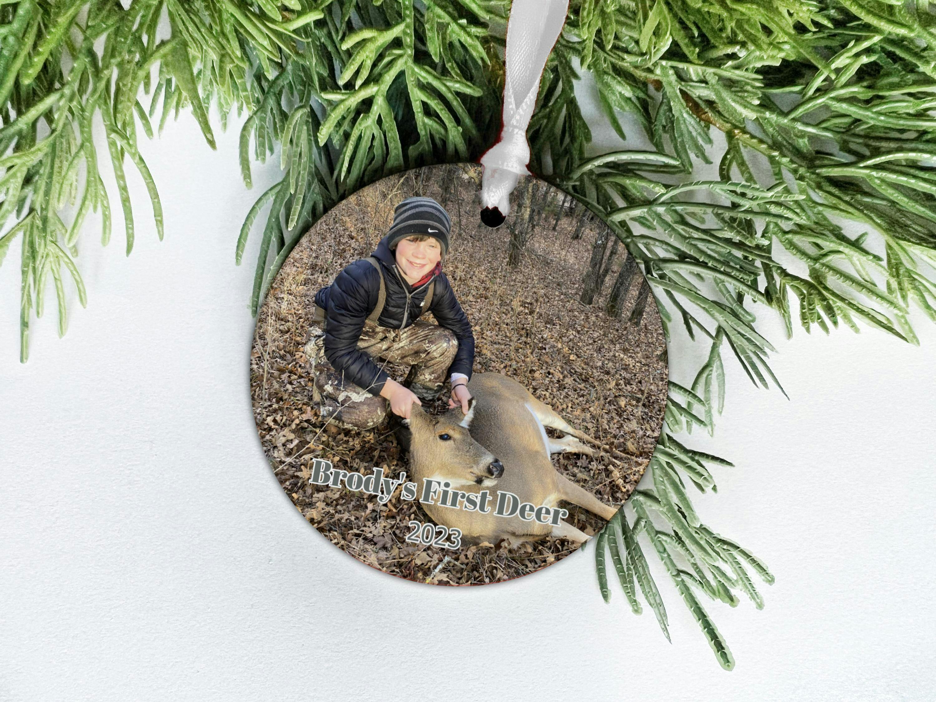 Celebrate your favorite hunting memory with a personalized photo ornament—customized with name, year, and your uploaded image directly on the website. Whether it’s a first deer, a father-child trip, or a snapshot of Daddy’s hunting buddies, this keepsake honors the bond built in the woods.