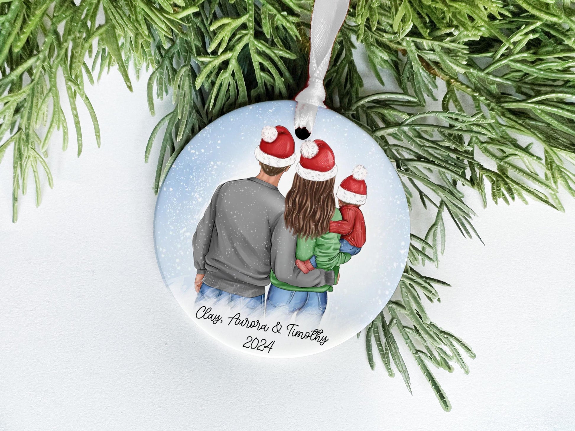 Commemorate your family's first Christmas together with our Personalized Family of Three Christmas Ornament! Whether you're celebrating the arrival of a newborn or gifting a keepsake to new parents, this charming ornament marks the moment with warmth and love.