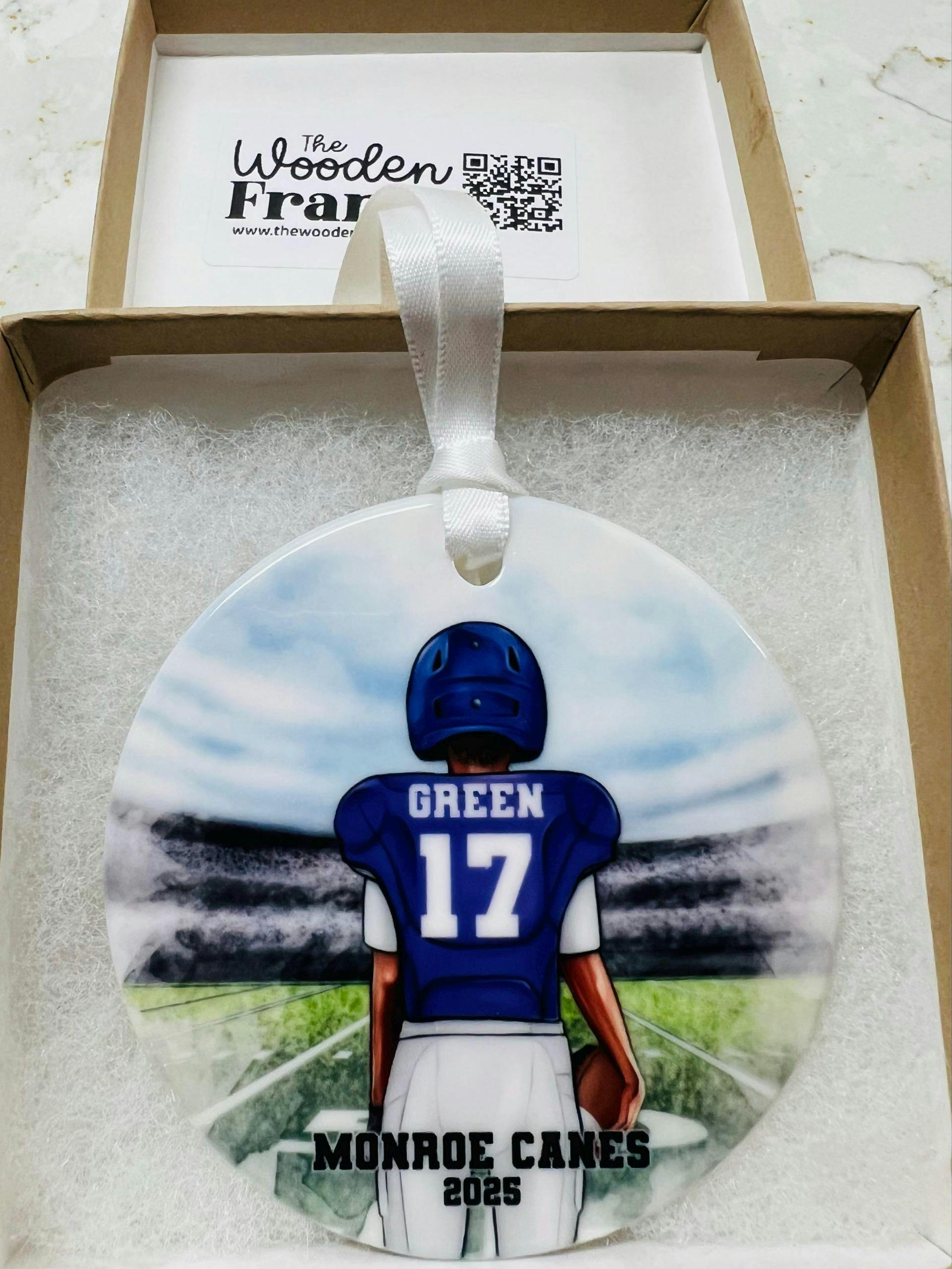 Football Player Ornament – Personalized Name & Year for Middle School Teams