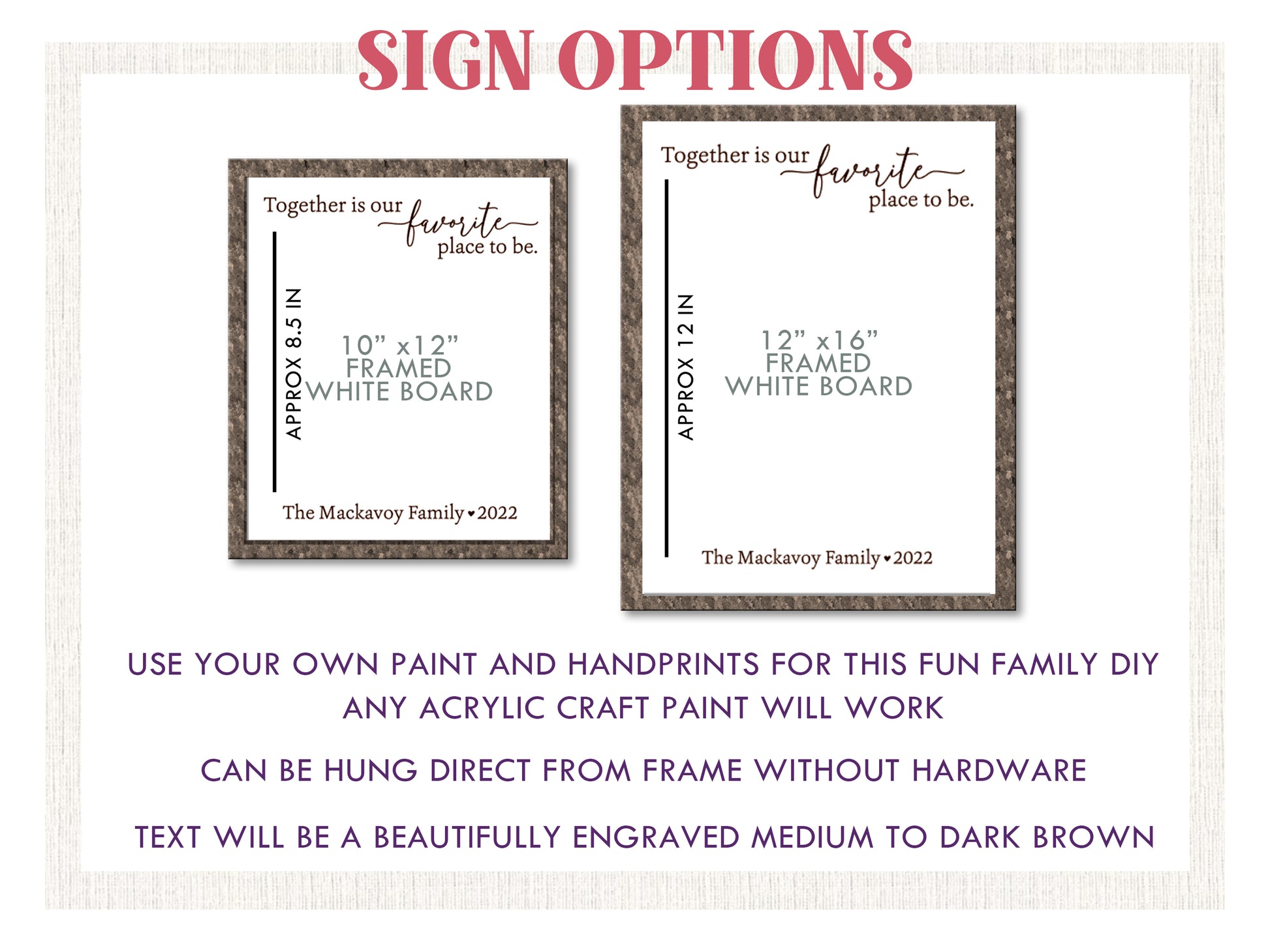 Create a personalized DIY gift for your loved ones with our Family Handprint Sign, featuring the heartwarming phrase "Together is our favorite place to be".